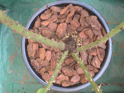 この時期にやって良いものか分からなかったが,ついでに今までの2つの鉢の土も同じもの(赤玉中粒6:牛ふん4)に入れ替える。根づまりはしていなかった。そうなると,これが原因で弱ってしまうのが怖い。