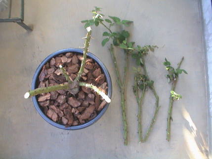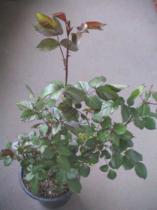 ブルー・リボンのベーサルシュートは葉を6枚残して切り取ることを3回繰り返した結果,ご覧の通りに。バラの生長はものすごい。