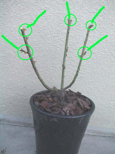 充実した芽がないのならいっそのこと枝を落すくらい剪定しようと思い,けいさんに相談したところ,『まだまだ時間があるので様子見でよい』とのこと。このままでいく。