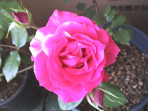 今回,赤玉土は中粒を使った。ブルーリボンやレッドシンプリシティーでは小粒を使ったものの最近水はけが極端に悪くなってきたのがその理由。土の粒が砕けていわゆる団粒構造が無くなったのだろう。