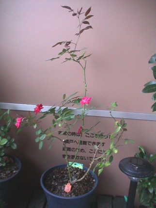 もう1色となれば,やはり赤である。どうせなら違う品種がよいので,1房に3〜5個の花をつけ,形も愛らしいフロリパンダにする。イントゥーリーグがレッド・シンプリシティか迷ったが,前者はワインレッドであることから,暗緑色の葉と明るい緋赤が綺麗だというレッド・シンプリシティにする。それに,1993年はあおいが生まれた年でもあるし。