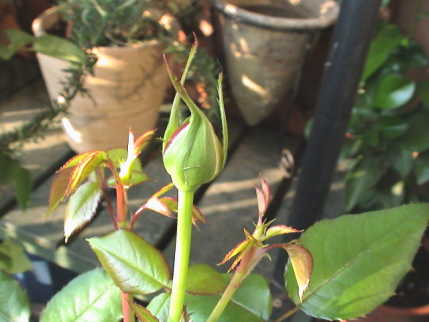 レッド・シンプリシティーはつぼみをつけ始めているものの全体的に勢いがなく背が低い。グングン伸びる枝が出てこない。台芽だと思って折ってしまった枝はもしかするとベーサルシュートだったのでは…という疑問が沸く。ちょっとだけ後悔。