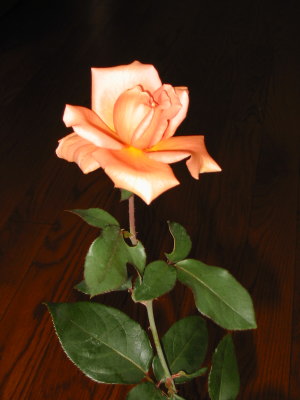 けいさんにイングリッシュ・ローズ系のピンクの品種 『エイブラハムダービー』 を一輪もらう。香りがたまらない。