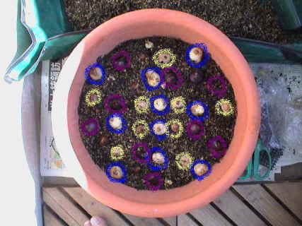 深さ 約7cmに植付け。.ちょっと乱雑になってしまった。