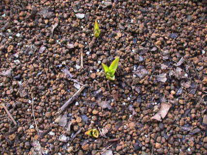 植付け後11日目でムスカリが発芽した。まさか芽が出るとは思わなかった。だって,咲くのは4月だろ。