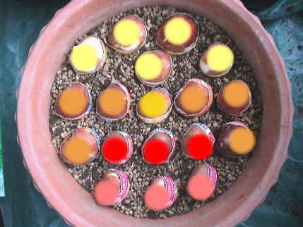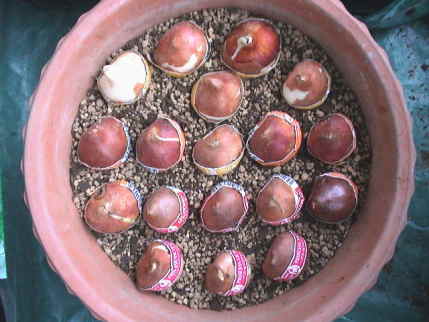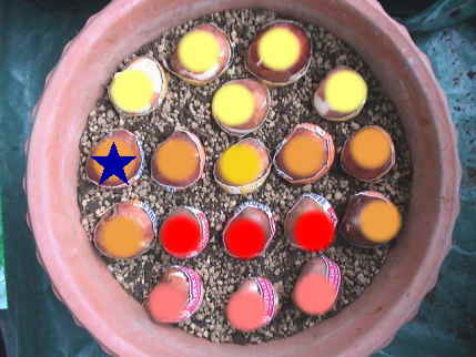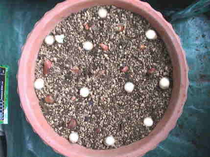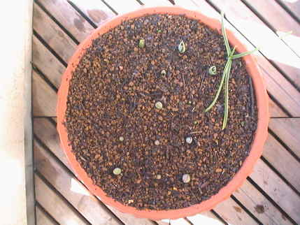 最新情報 ●2002/02/25 約4ヶ月後の様子です。 ●2002/01/27 3ヶ月後の様子です。 ●2001/12/02 ムスカリが発芽しました。 ●2001/10/28 植付けました。 |