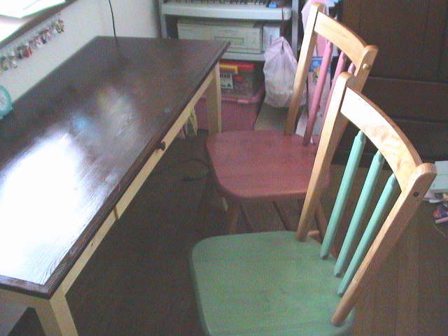 あおいの小学校入学を控えた2000年春,学習机を買おうかと家具屋やデパートを回ってみる。大人になっても使えるような良質で飽きのこないシンプルなものが目当てなのになかなか気に入ったものがない。記念でもあるし,後で使わなくなってもあおいは喜ぶだろうから買ってしまおうかとも思った(私が買ってもらったのは小学5年の時。嬉しくて今でも覚えている)。でも,もえが小学校に上がった時に同じように買ったら,今の子供部屋では2つ置くスペースはない。それに,低学年のうちはダイニングテーブルやリビングで宿題やお絵描きができるだろう と,購入は見合わせることにした。
